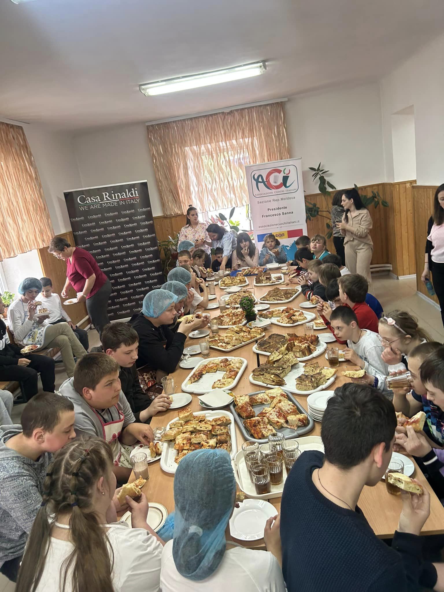 Pentru elevii acestei instituții s-a organizat un master class deosebit de gustos. Copiii s-au bucurat de cea mai vestită mâncare italiană ale acestei țări însorite – pizza. Ei au fost ghidați și li s-a demonstrat, pas cu pas, cum se prepară o pizza veritabilă italiană, din ingrediente naturale marca Casa Rinaldi. La finele activității toți elevii au servit din pizza preparată chiar de ei și de Chef Marcel Cristenco ajutat pentru această minunată ocazie de Chef Oleg Rotaru.