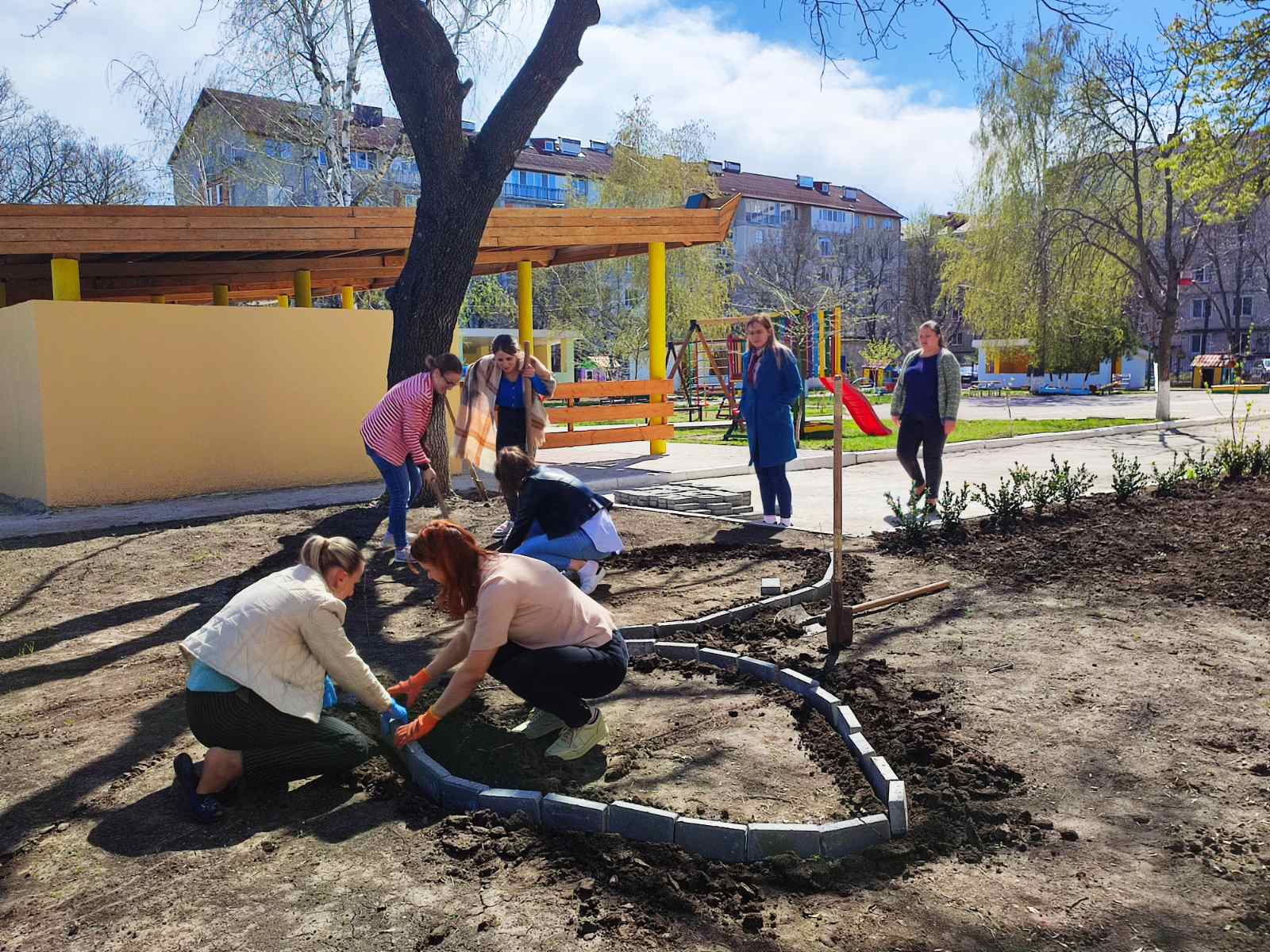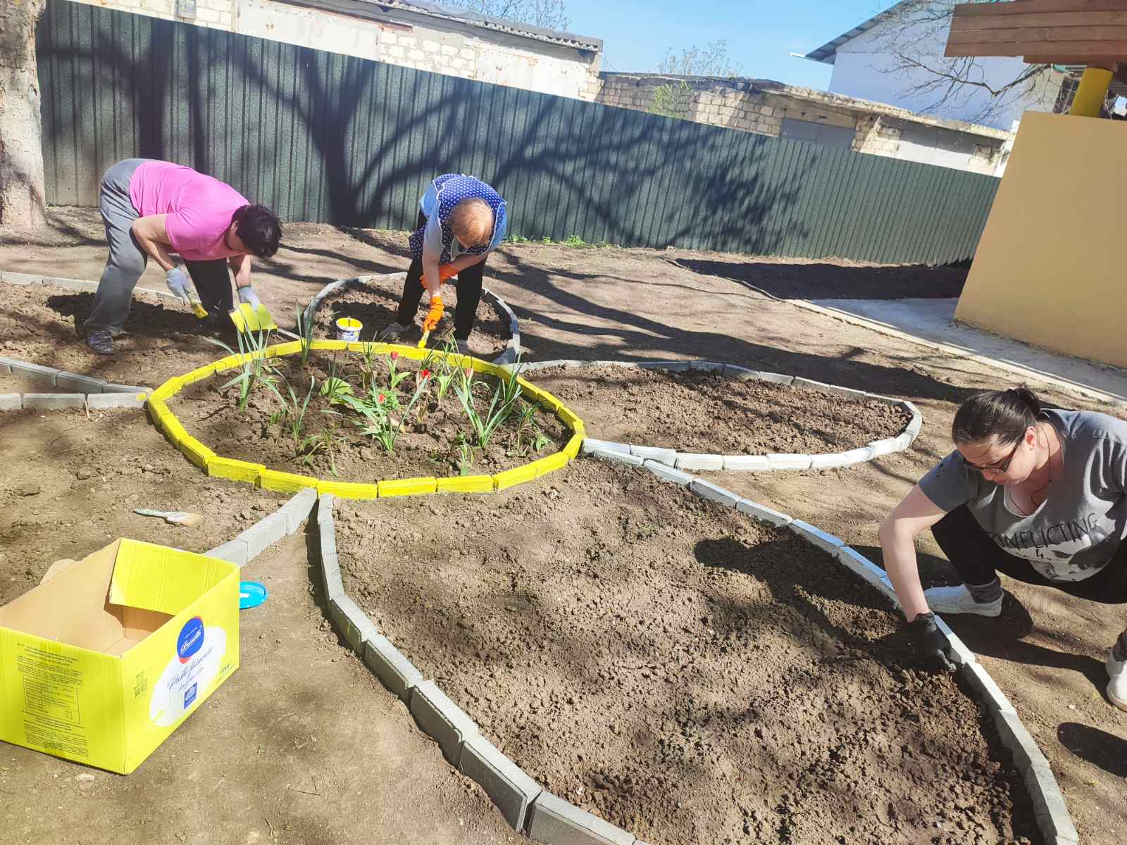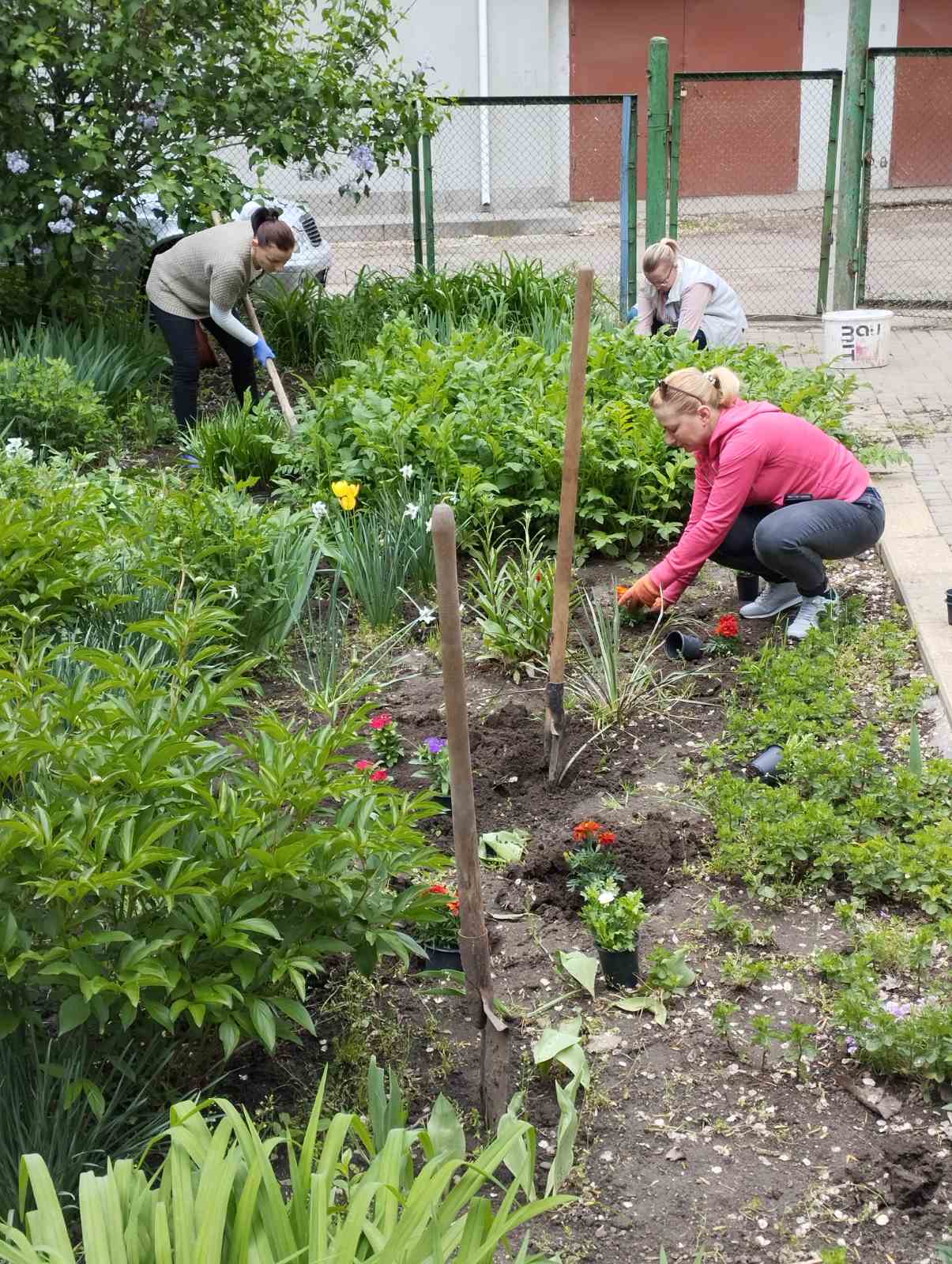 – amenajarea spațiului verde prin afânarea solului și plantarea florilor, modelarea coronamentelor arbuștilor, montarea elementelor de decor de grădină,